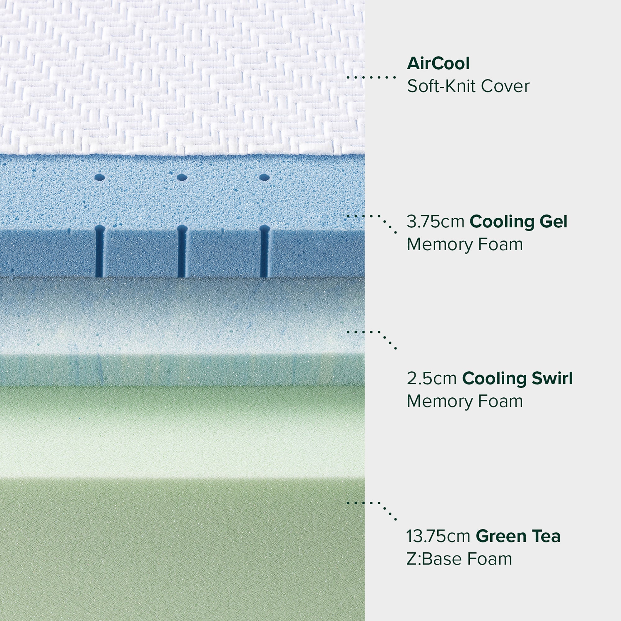 Relax into the ultimate cooling comfort and wake up fully rested. Designed with 7-zone support to help relieve pressure on shoulders, hips, and back, while encouraging proper spinal alignment for a pressure-free, restorative sleep. Enhanced with Cooling Swirl memory foam wrapped in breathable knitted cover for all night coolness, it’s the ultimate choice for a cool recharging sleep.