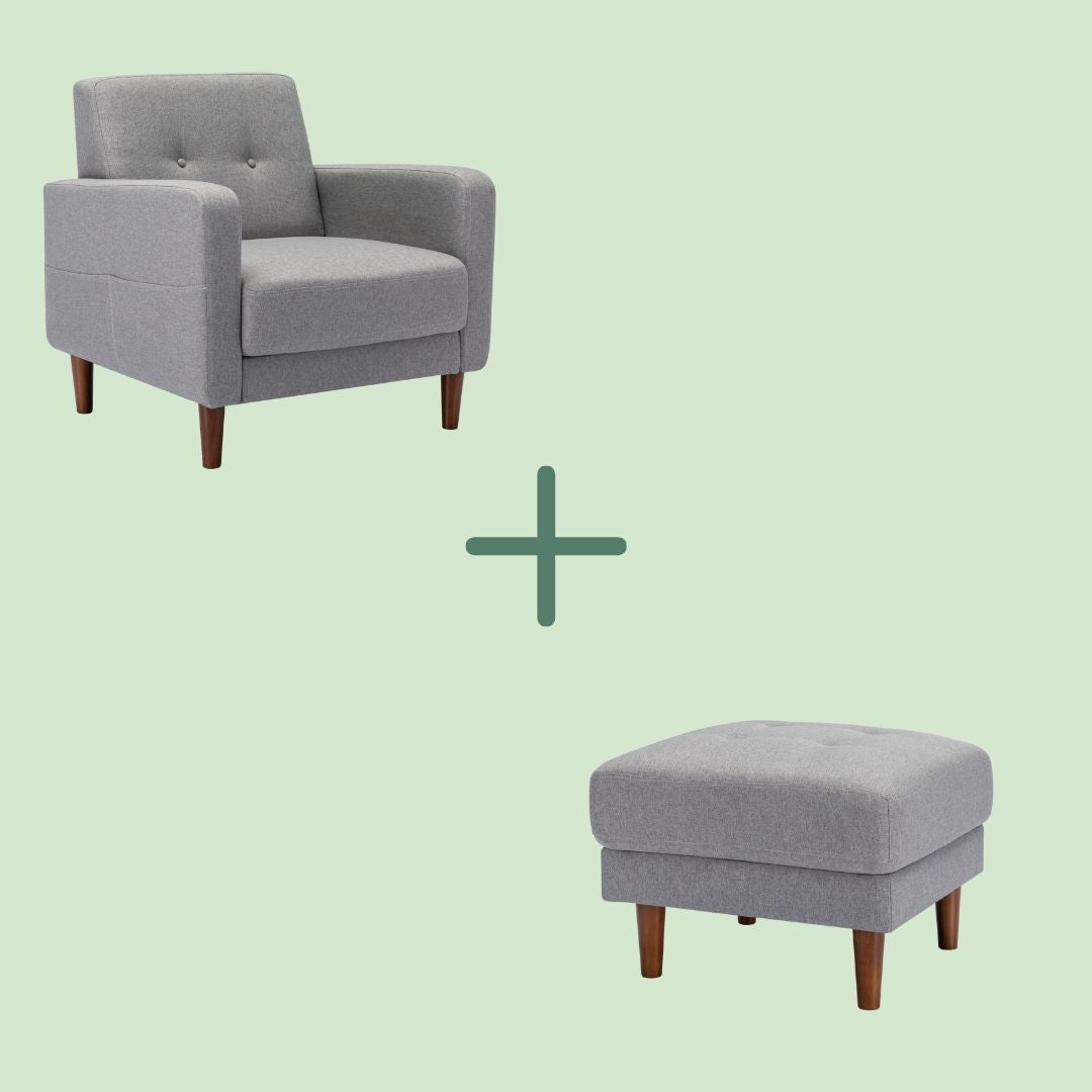 Complete your cozy corner with the Adair Armchair and Ottoman — a matching duo built for relaxed living. The armchair features soft cushioning, natural eucalyptus wood framing, and smart side pockets to keep essentials within reach. Paired with the versatile ottoman for your feet or an extra seat, this bundle brings function and comfort together in perfect balance.